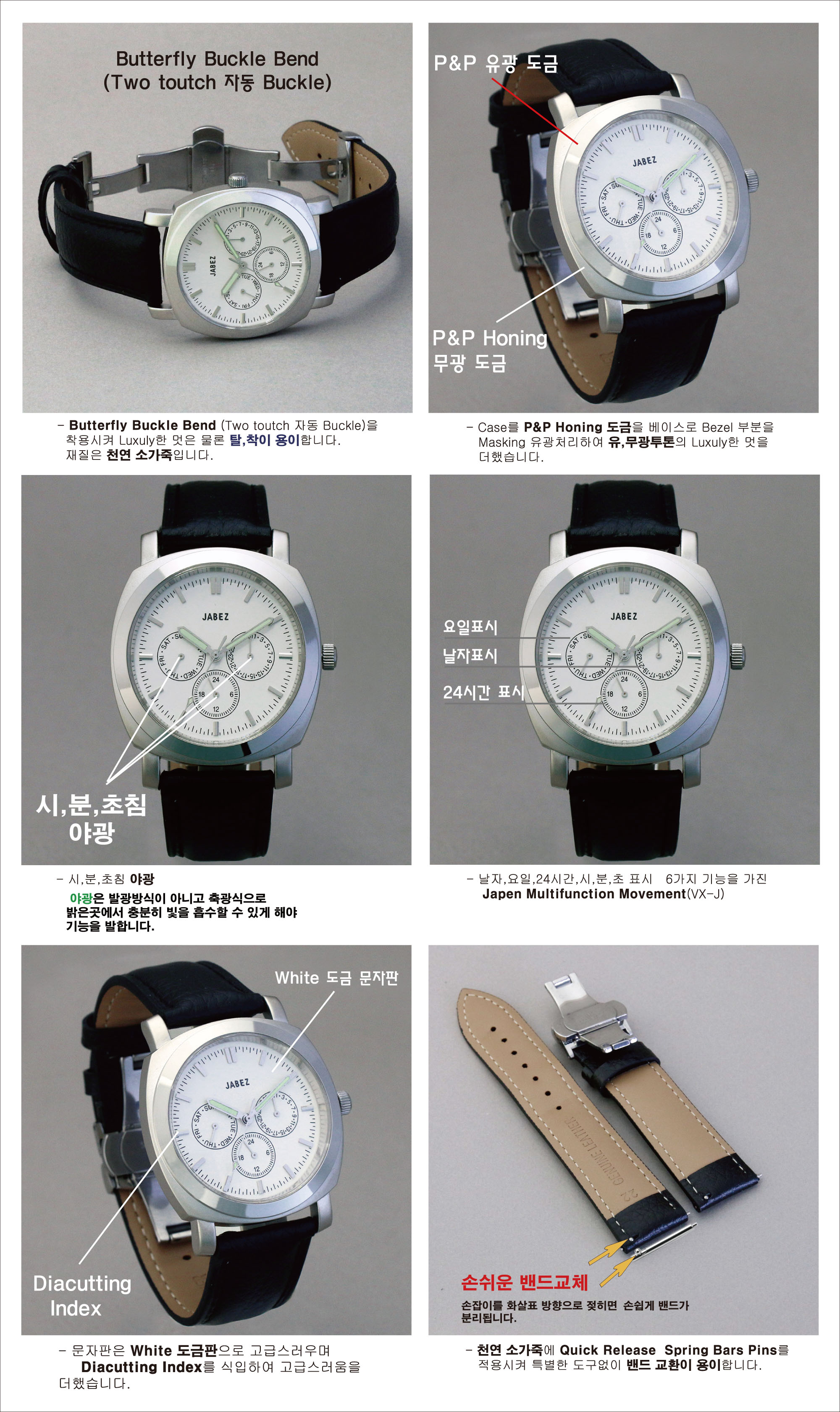 #쉬운밴드교체,#야광시계,#Multi-function Watch,#VX-3j,멀티시계,#유무광 Tow-tone 시계,#천연가죽밴드시계,#날자시계,#요일표시시계,#24시간시계,#크로노그래프시계,#남성정장시계,#남자정장시계,
