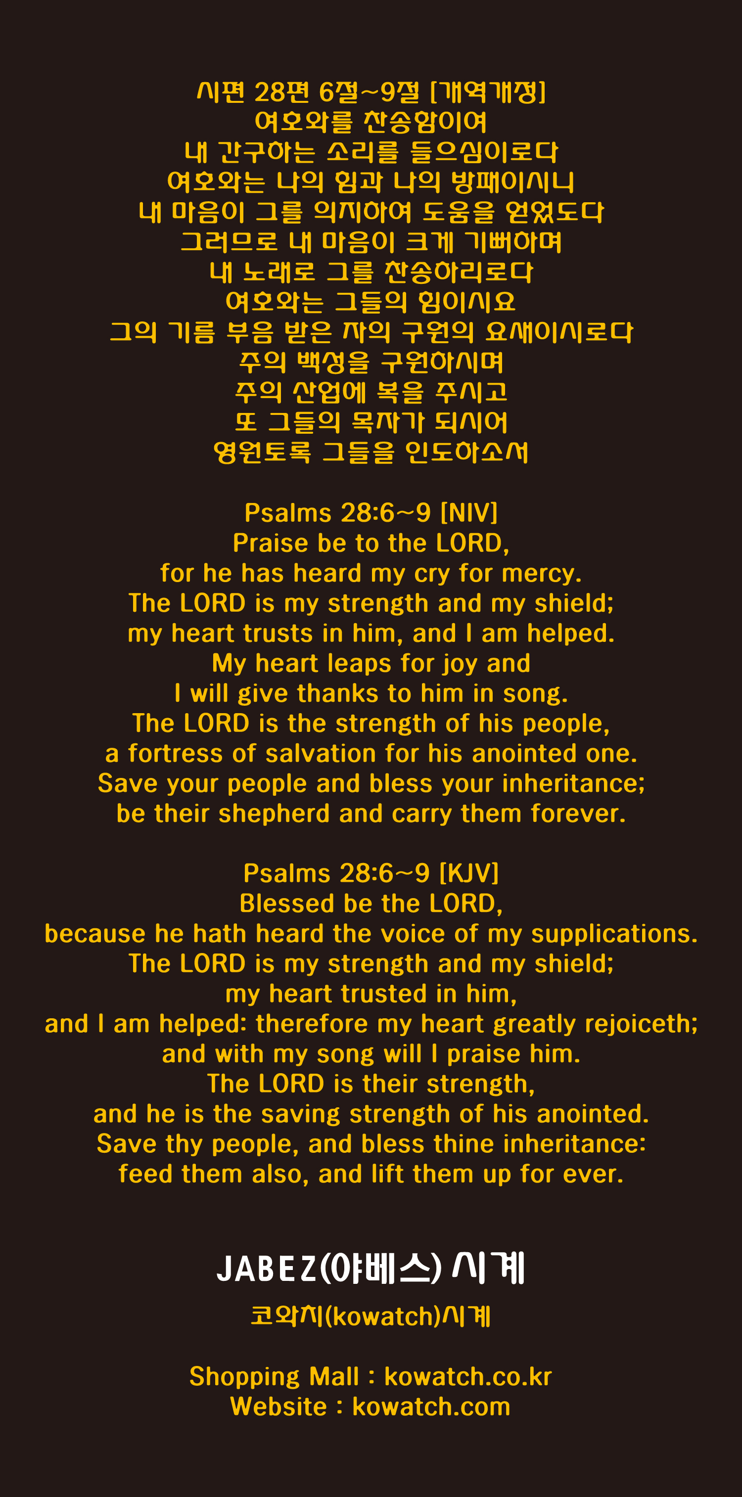 시편 28편 6절~9절 [개역개정]